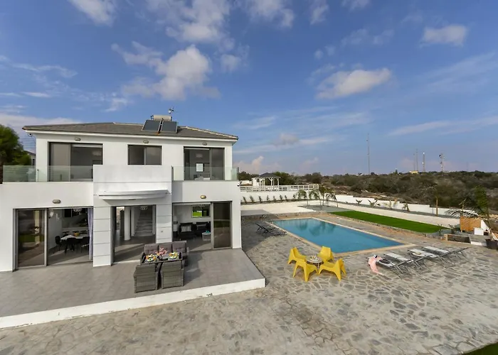 Protaras Greco Hilltop Views jest położona około 10 min autem od takich atrakcji przyrodniczych jak Plaża Kalamies i oferuje nurkowanie, wędrówki piesze i jazdę konną. Willa leży w mieszkaniowej dzielnicy oraz oferuje prywatny basen kąpielowy, a także taras.